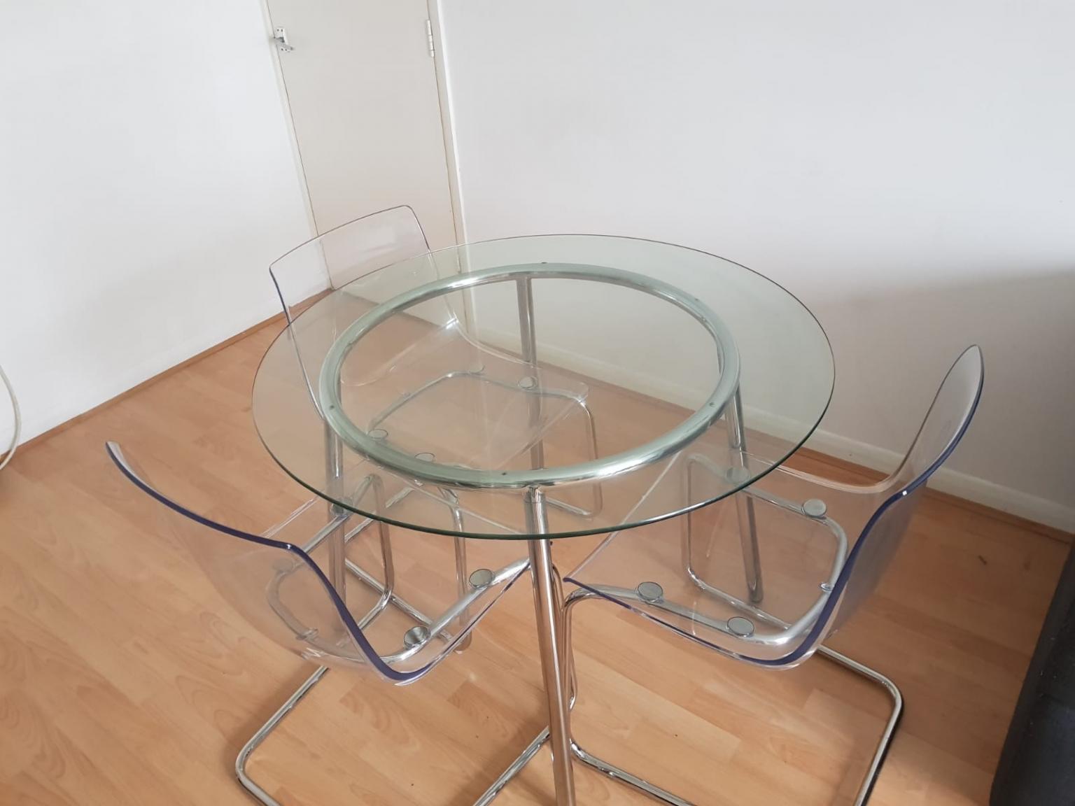 ikea magiker coffee table glass top clear white rubber cushion pad part round. Chrome and glass, understated, yet totally modern. Corinna 12 seat dining table, concrete & Au $34.00 7 bids postage: This model has drop leaves that can be folded and removed meaning that the table's size can be quickly adjusted according to your needs.